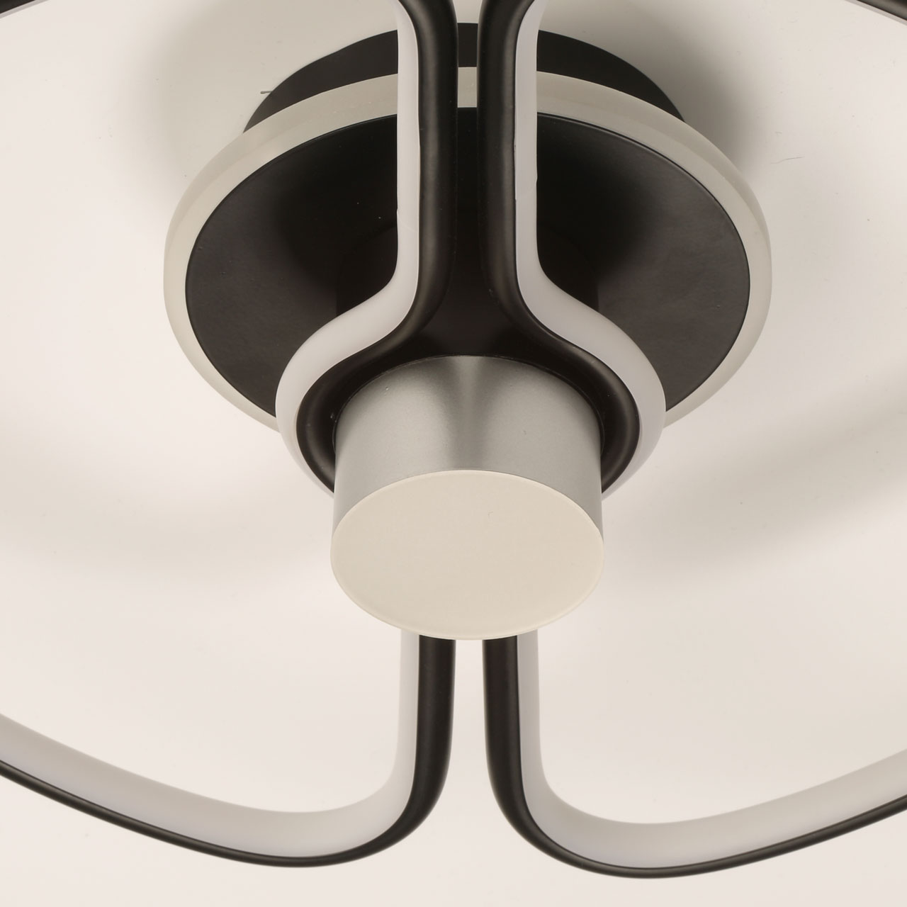 Светильник изготовлен из качественных материалов. Основание из металла и плафон из алюминиевого сплава окрашены в черный тон. В центре расположена металлическая деталь в серебряном исполнении. Светодиод закрыт вставкой из белого матированного силикона, что обеспечивает мягкое, комфортное свечение.