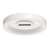 Металлическое основание светильника окрашено в белый цвет. Светодиодные источники света закрыты белым матовым акрилом. В центр светильника, выделенного металлическим кантом, гальванизированным в цвет хрома, на пластине из сплава алюминия, окрашенной в металлический цвет, встроены 5 светодиодов функционального освещения. В комплект входит пульт.