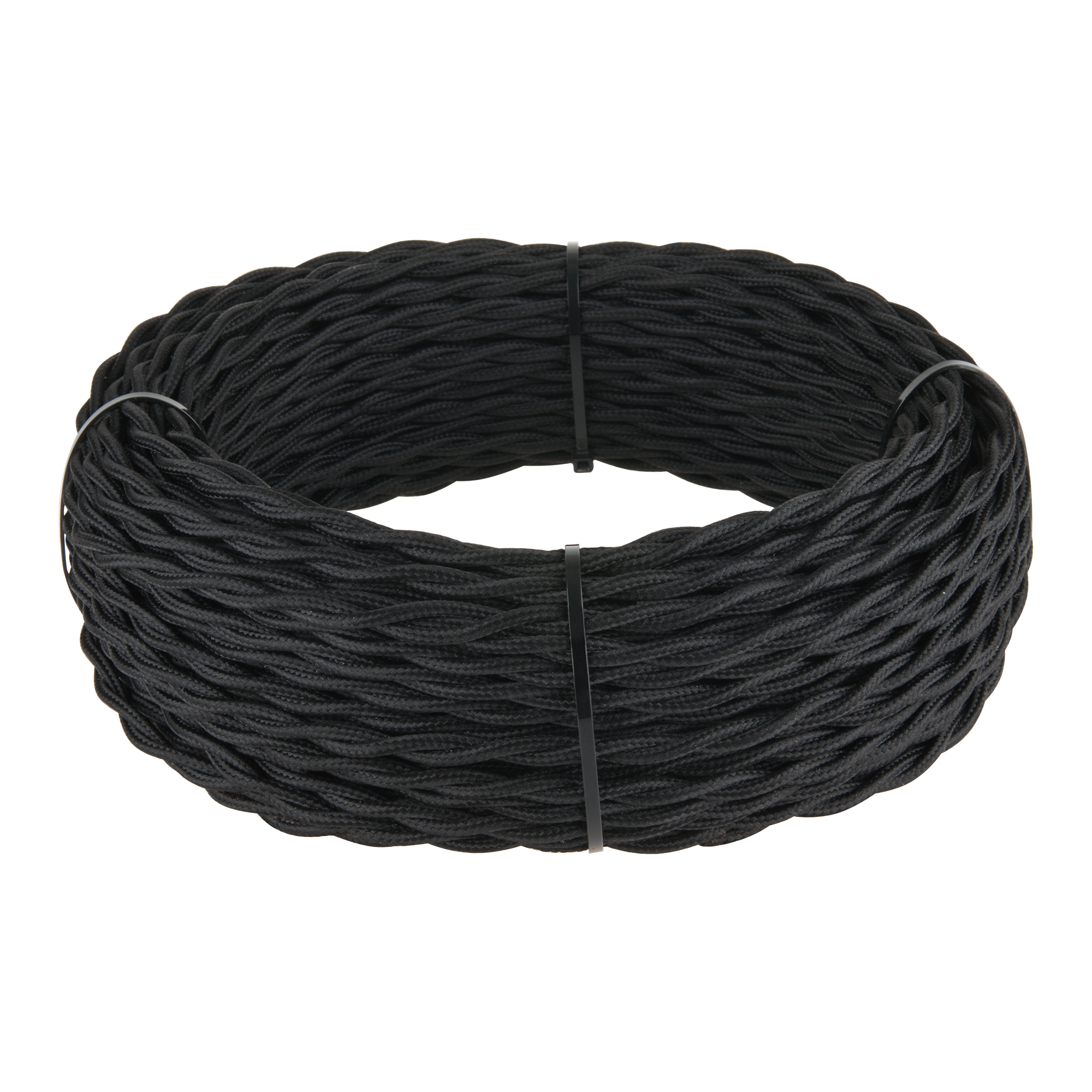 Ретро кабель витой 3х2,5 черный 50 м. Многожильный медный провод обеспечивает гибкость кабеля и его высокие электротехнические характеристики. Наружная оплетка кабеля имитирует натуральный шелк.