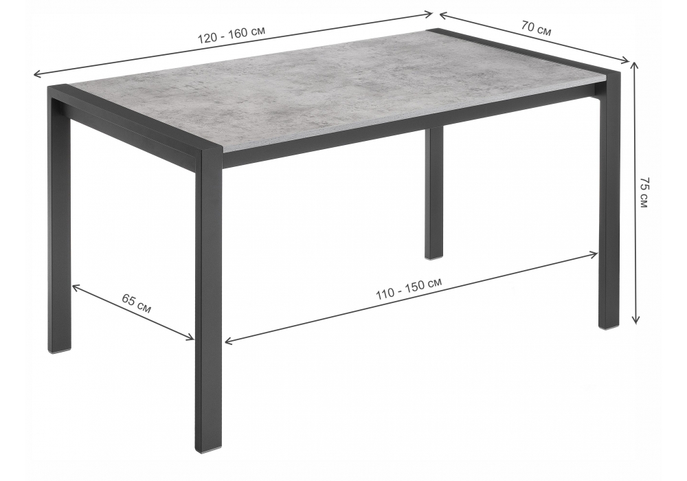 - Длина стола в разложенном виде: 1600