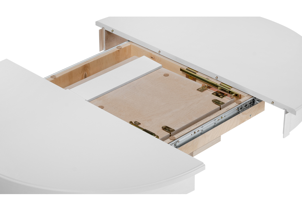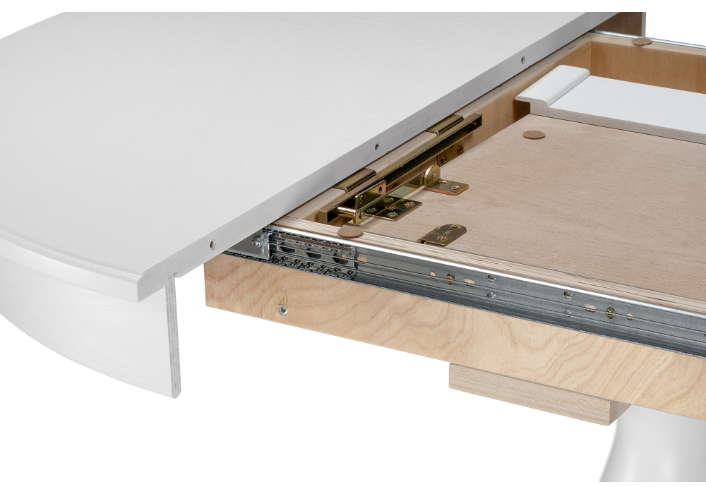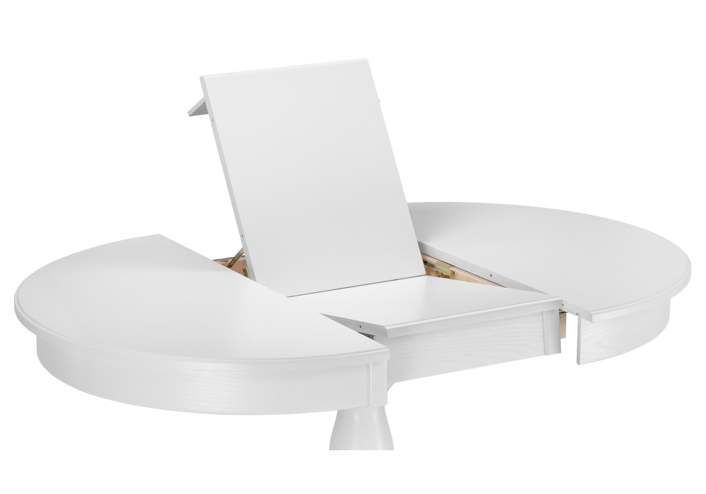 Толщина столешницы: 2,2 см. Материал каркаса - Массив бука; Материал ножек - Массив бука; Материал столешницы - Шпон / МДФ; Цвет каркаса - Белый; Цвет ножек - Белый; Цвет столешницы - Белый; Цвет подстолья - Белый; Ширина - 100; Высота - 76; Длина стола в разложенном виде - 140; Длина - 100;