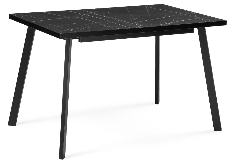 Толщина столешницы: 3 см. Материал каркаса - Металл; Материал ножек - Металл; Материал столешницы - ЛДСП; Цвет каркаса - Черный; Цвет ножек - Черный; Цвет столешницы - Мрамор черный; Ширина - 75; Высота - 75; Длина стола в разложенном виде - 160; Длина - 120;