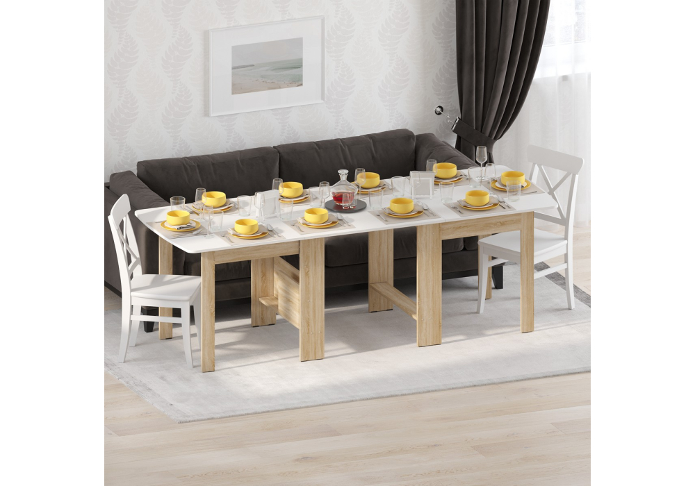 Материал каркаса - ЛДСП; Материал столешницы - ЛДСП; Цвет каркаса - Дуб сонома; Цвет ножек - Дуб сонома; Цвет столешницы - Белый; Ширина - 34,2 - 86,6; Высота - 78,5; Длина - 86,6 - 240,6;