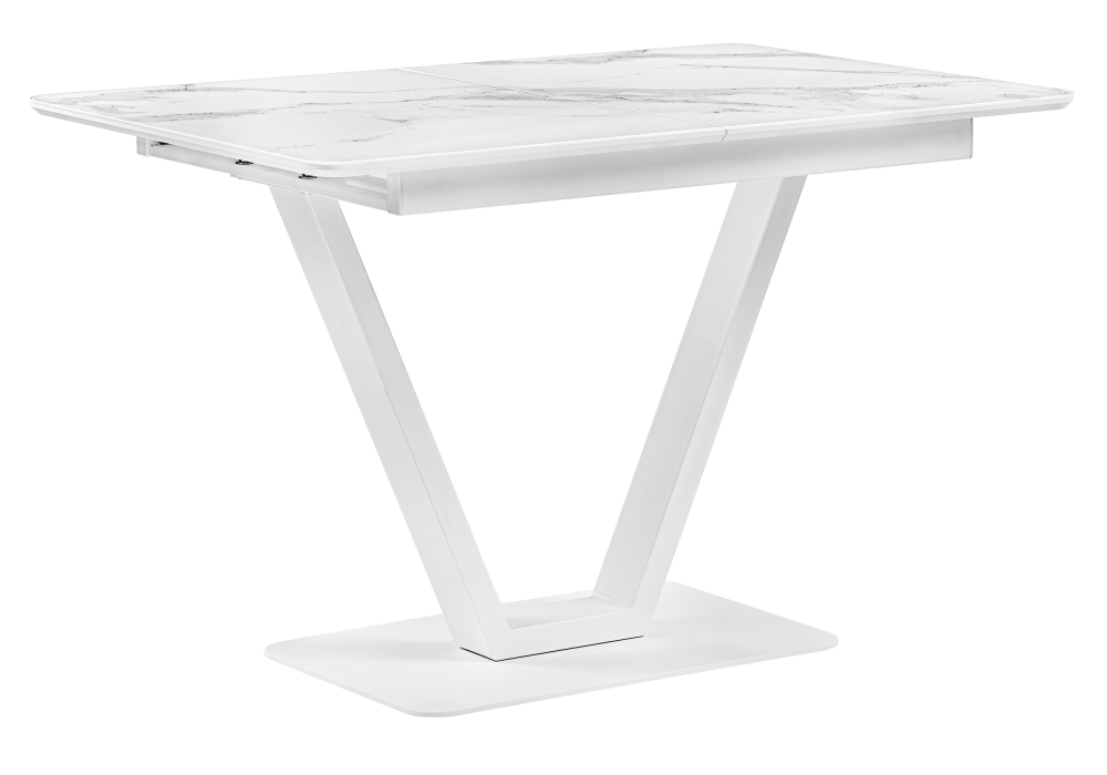 Толщина столешницы: 2 см. Материал каркаса - Металл; Материал ножек - Металл; Материал столешницы - Стекло / МДФ; Цвет каркаса - Белый; Цвет ножек - Белый; Цвет столешницы - Белый; Цвет подстолья - Белый; Ширина - 80; Высота - 77; Длина стола в разложенном виде - 160; Длина - 120;