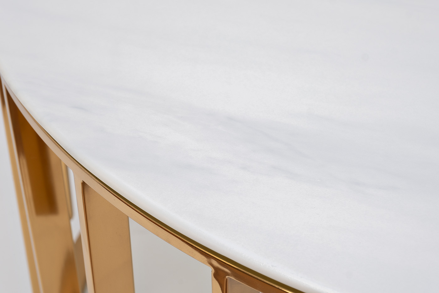 Журнальный круглый столик – первоклассная дизайнерская мебель, в которой проявляется элегантность и аристократический шик. Сочетание основы из стали с благородным золотым блеском и тонкой светлой столешницы с имитацией «под мрамор» выглядит необычайно эффектно. Мраморный журнальный стол превосходно вписывается в стилистику интерьеров ар-деко, модерн, фьюжн, неоклассика, минимализм. Небольшой по габаритам столик станет красивым и полезным дополнением к обстановке гостиной или рабочего кабинета, его также можно использовать в качестве тумбы и подставки для вазы или настольной лампы. купить этот журнальный столик в тандеме с аналогичной моделью большего размера.