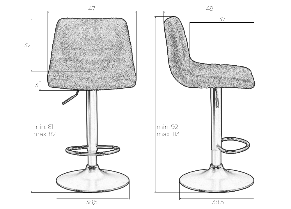 - Высота сиденья: 61 мм