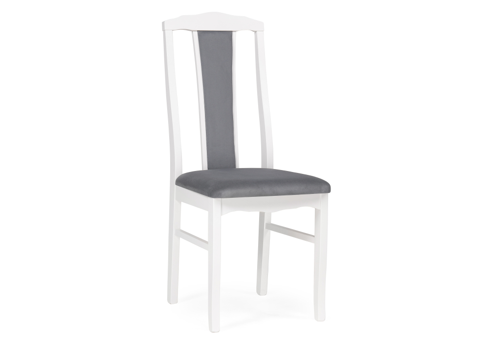 Материал каркаса - Массив березы; Материал сиденья - Велюр; Материал ножек - Массив березы; Материал обивки - Велюр; Цвет каркаса - Белый; Цвет сиденья - Серый; Цвет ножек - Белый; Цвет обивки - Серый; Ширина - 42; Глубина - 50; Высота - 98; Ширина сиденья - 40; Глубина сиденья - 41; Высота сиденья - 47;