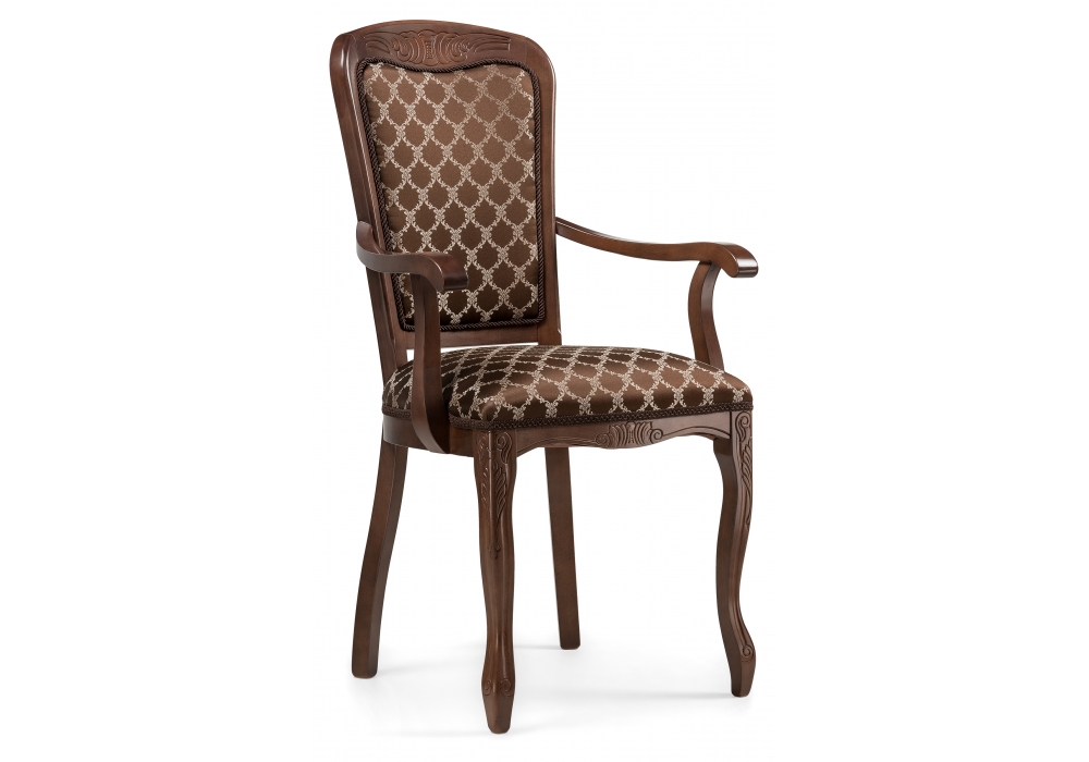 Высота подлокотников: 69 см. Материал каркаса - Массив бука; Материал сиденья - Ткань; Материал ножек - Массив бука; Материал обивки - Ткань; Цвет каркаса - Орех; Цвет сиденья - Коричневый; Цвет ножек - Орех; Цвет обивки - Коричневый; Ширина - 58; Глубина - 60; Высота - 103; Ширина сиденья - 49; Глубина сиденья - 45; Высота сиденья - 52;
