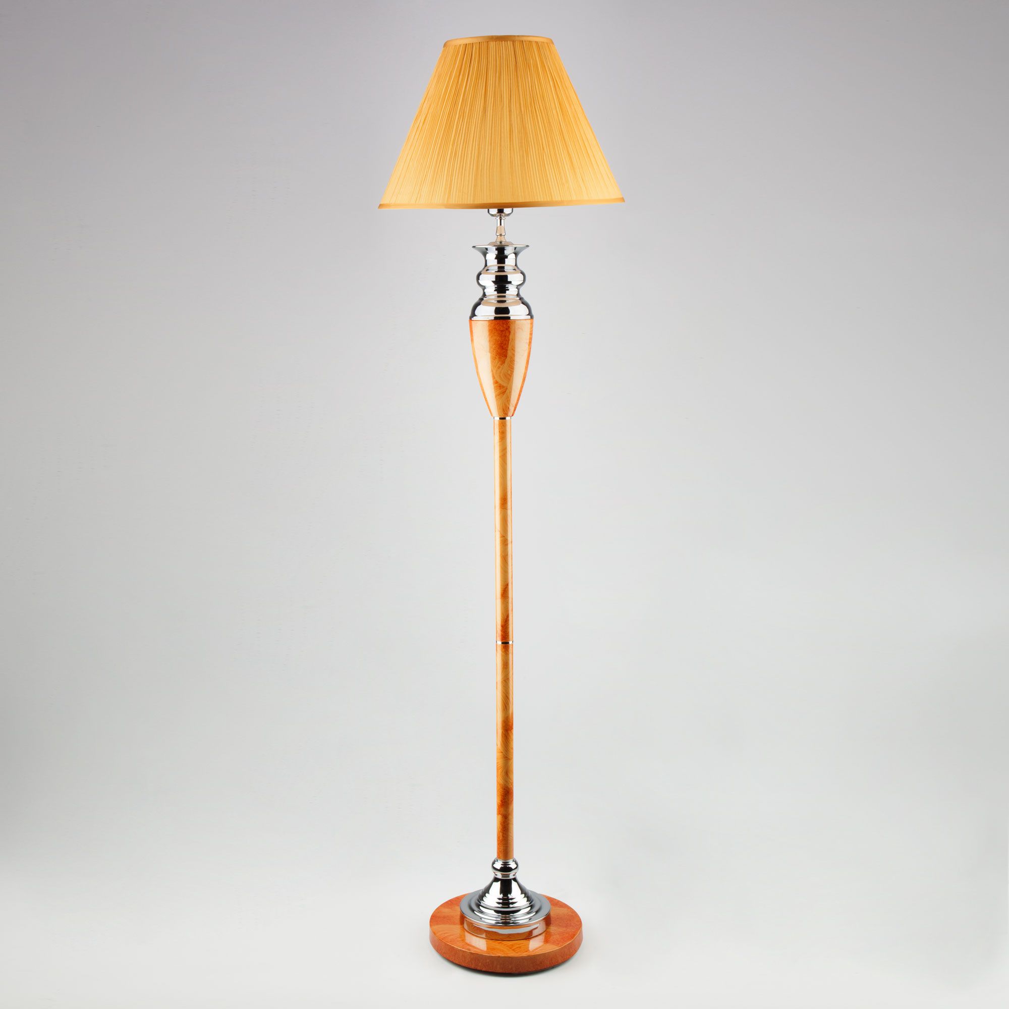 Торшер с тканевым абажуром 009/1T RDM в янтарном цвете - это стильный элемент светового дизайна в современных и классических интерьерах. Эффектный торшер со сменной лампой E27 поможет создать качественное дополнительное освещение на площади 2 м² и станет роскошным украшением вашей спальни или гостиной.
