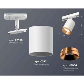 Комплект трекового светильника Ambrella light XT7421004 SWH/PYG белый песок/золото желтое полированное (A2536, C7421, N7034)