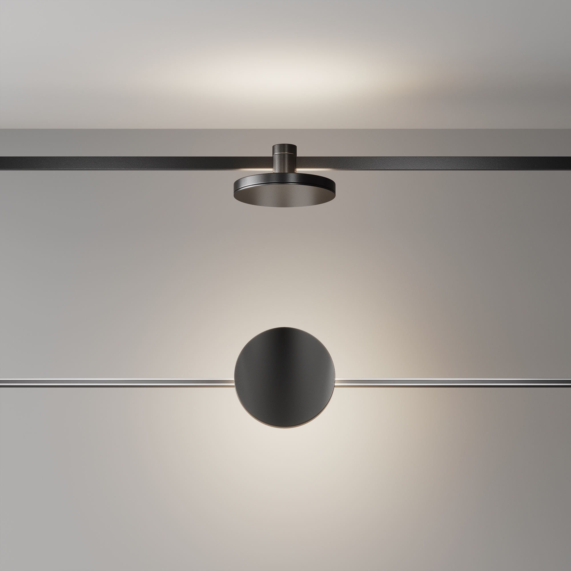Корпус из алюминия. Два цвета арматуры – черный (порошковое окрашивание) и латунь (гальваническое покрытие), отлично сочетающиеся между собой. Светильник с плоской конструкцией. Две модификации: с прямым световым потоком и с подсветкой. Источник света – светодиоды Osram с цветовой температурой 3000К, углом рассеивания 120 °. Фиксация на шинопровод производится посредством надежных неодимовых магнитов. Светильники свободно перемещаются на шине в произвольном направлении. Функция диммирования поддерживается только в связке с блоками питания DALI/0~10V.