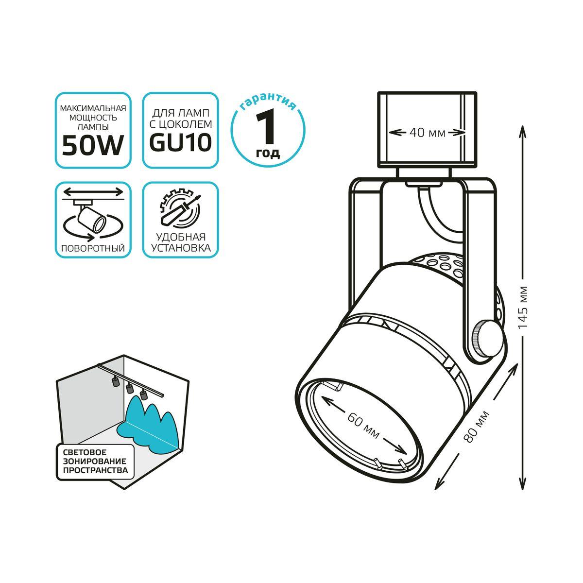 - Тип цоколя: GU10
