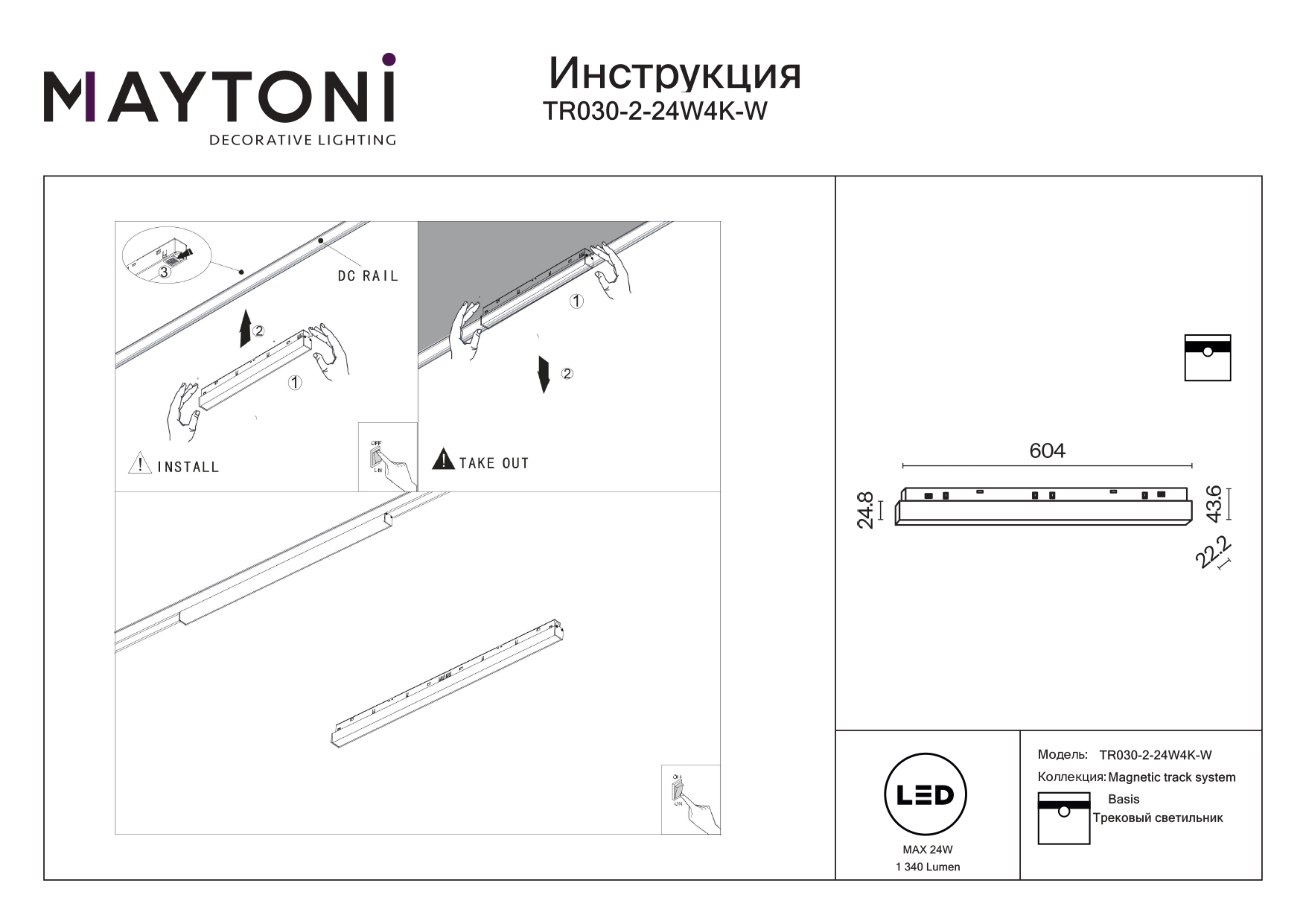- Общая мощность: 24 W