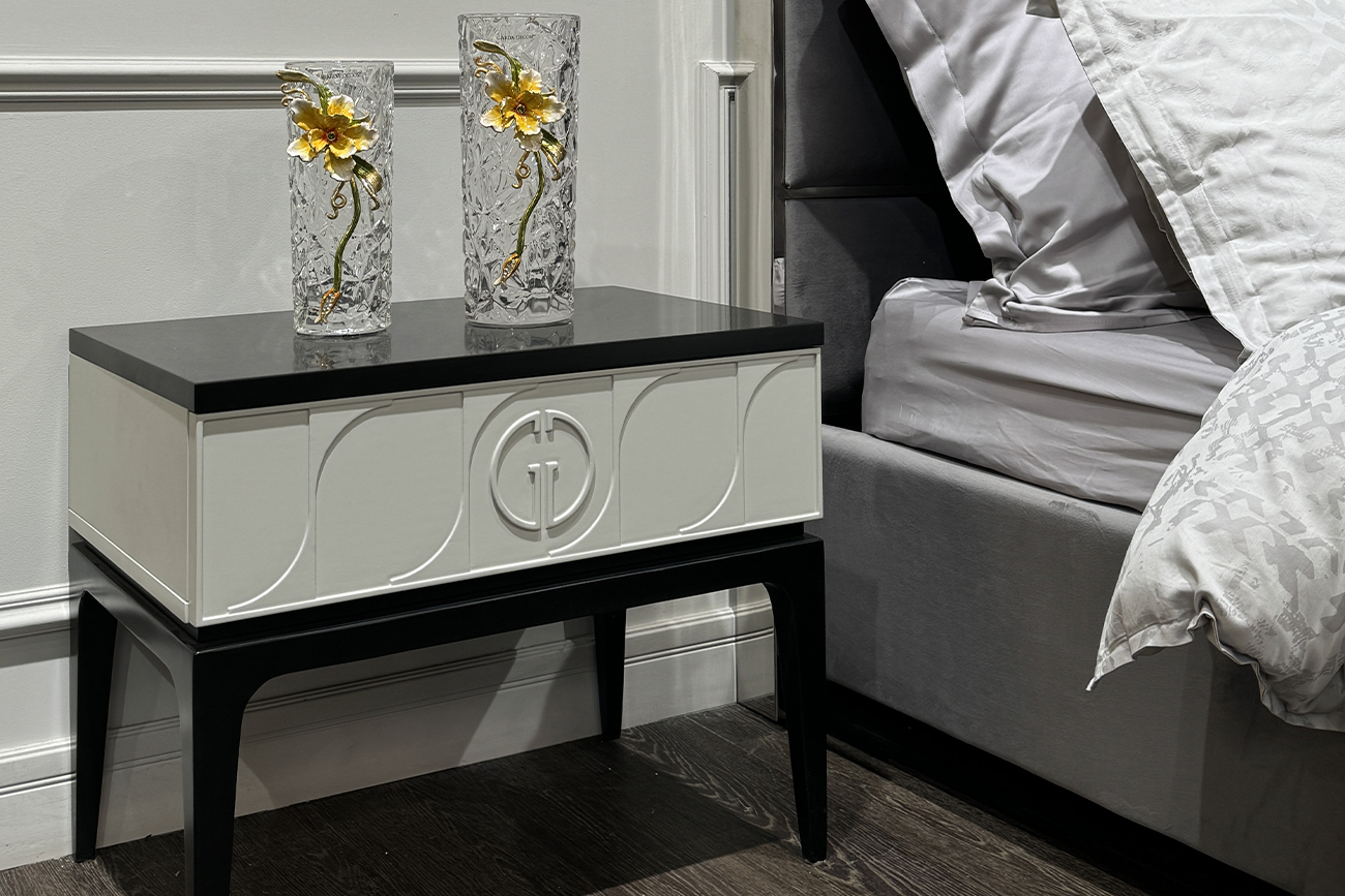 Дизайнерская прикроватная тумбочка Spinola выполнена в стиле арт-деко и воплощает в себе лучшие его характеристики: сполкойные оттенки, симметричные узоры, четкие линии, высококачественные материалы. Разместить можно тумбочку в спальне, гостиной, кабинете, детской комнате. Вместительный скрытый ящик позволит хранить личные вещи, косметику, текстиль. Купить прикроватную тумбочку можно онлайн на сайте, что удобно, выгодно и экономит время.
