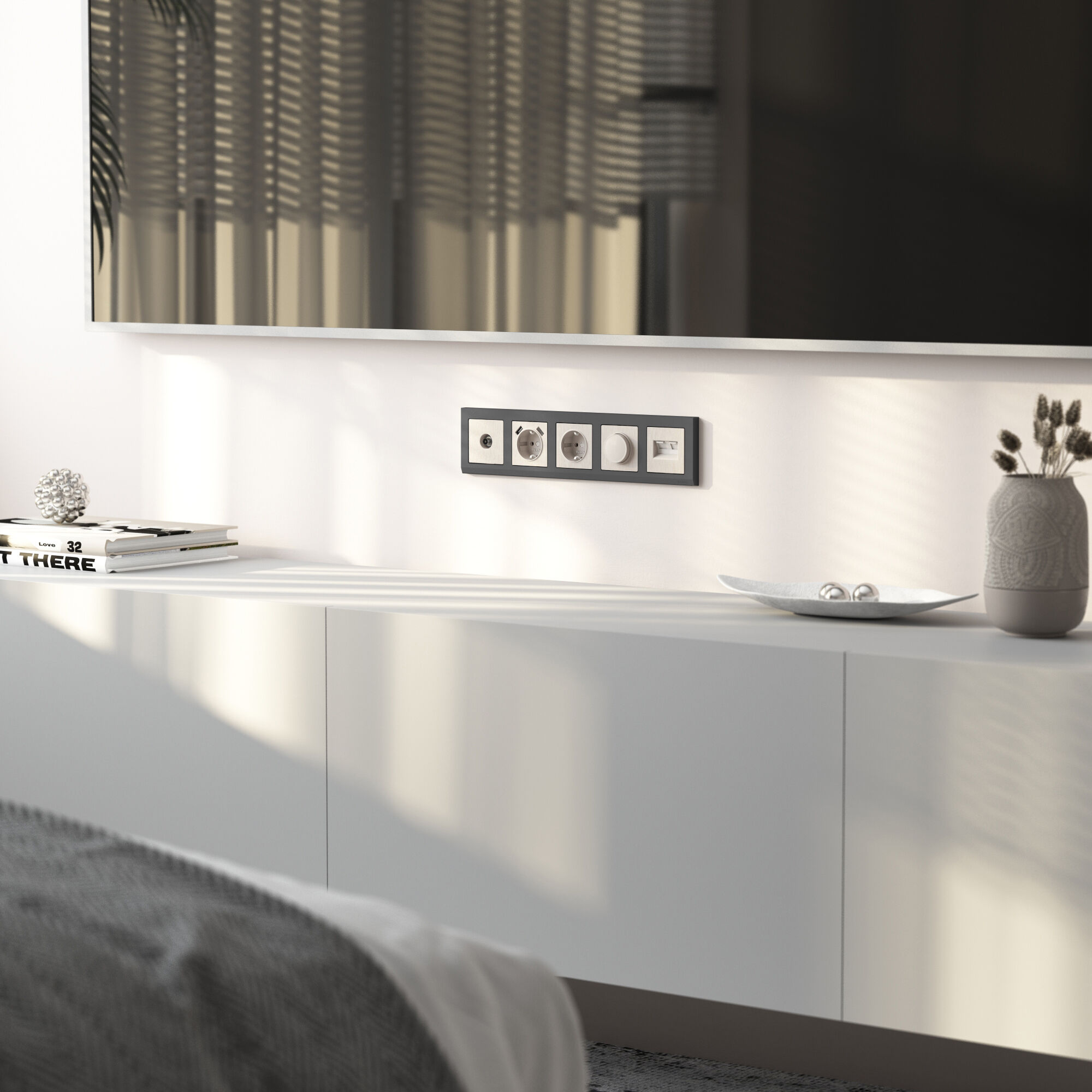Механизм монтируется в подрозетник, оставляя видимым только внешнюю лицевую панель и декоративную рамку. Телевизионная розетка для скрытой установки оснащена суппортом из нержавеющей стали и распорными лапками, позволяющие надежно зафиксировать изделие в подрозетнике.