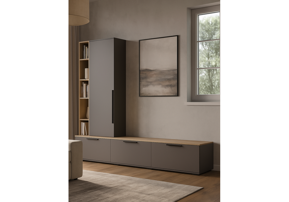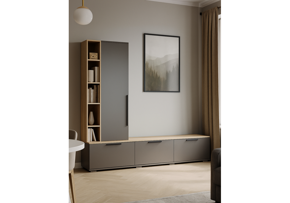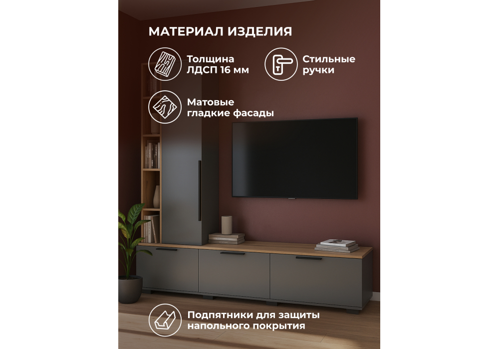 Купить "ТВ-тумба Woodville Филеста графит / дуб вотан 664893"