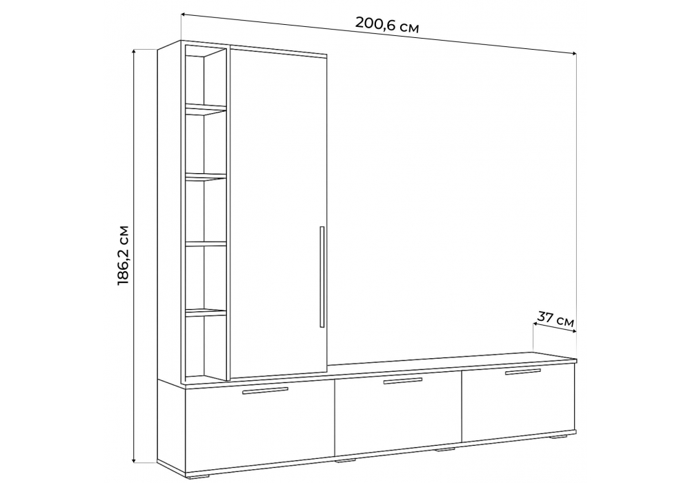 Материал каркаса - ЛДСП; Ширина - 200,6; Глубина - 37; Высота - 186,2;