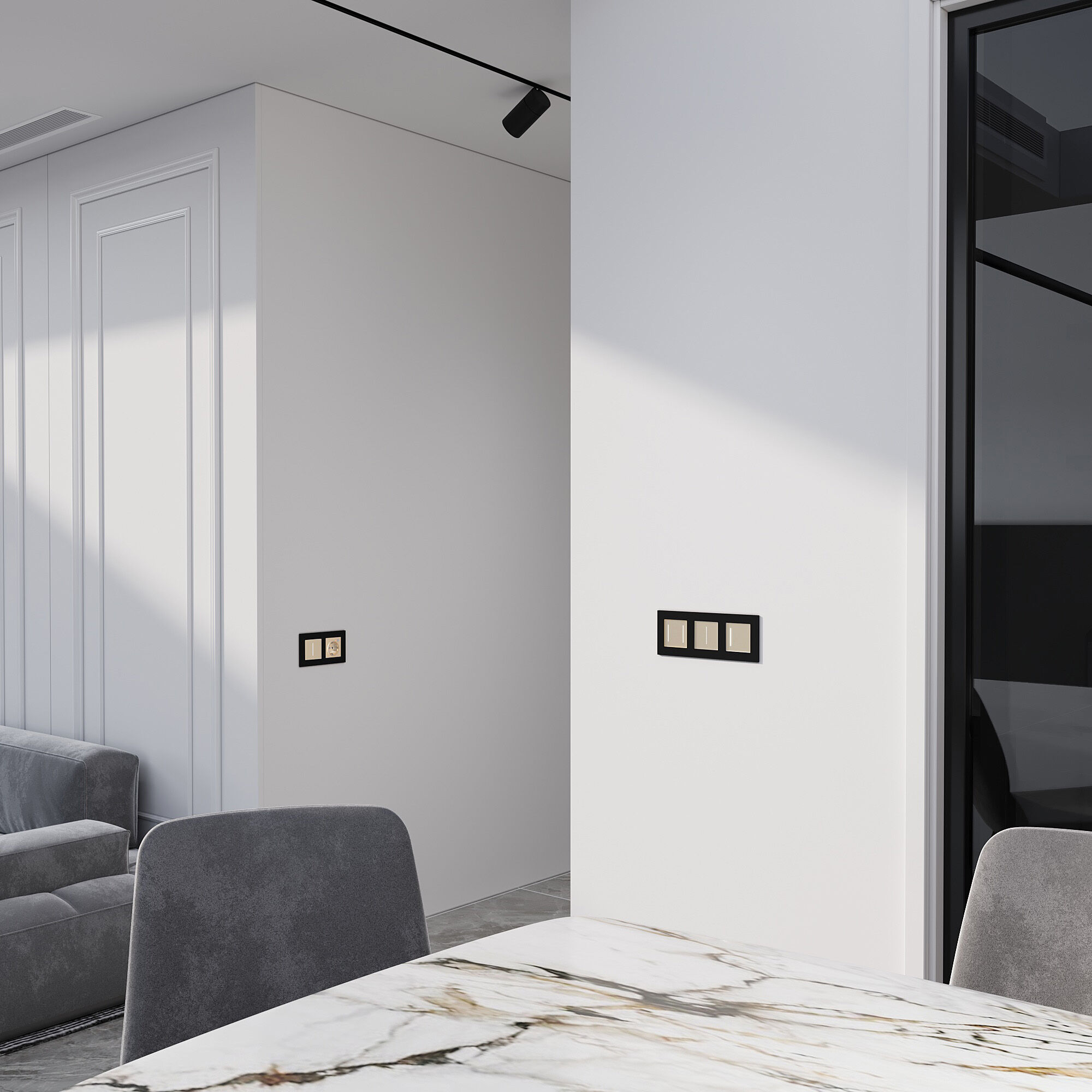 Для подключения дополнительных выключателей в проходные схемы не требуется прокладка кабеля к остальным выключателям. Логика работы всех выключателей легко задается и изменяется под потребности в приложении Minimir Home.