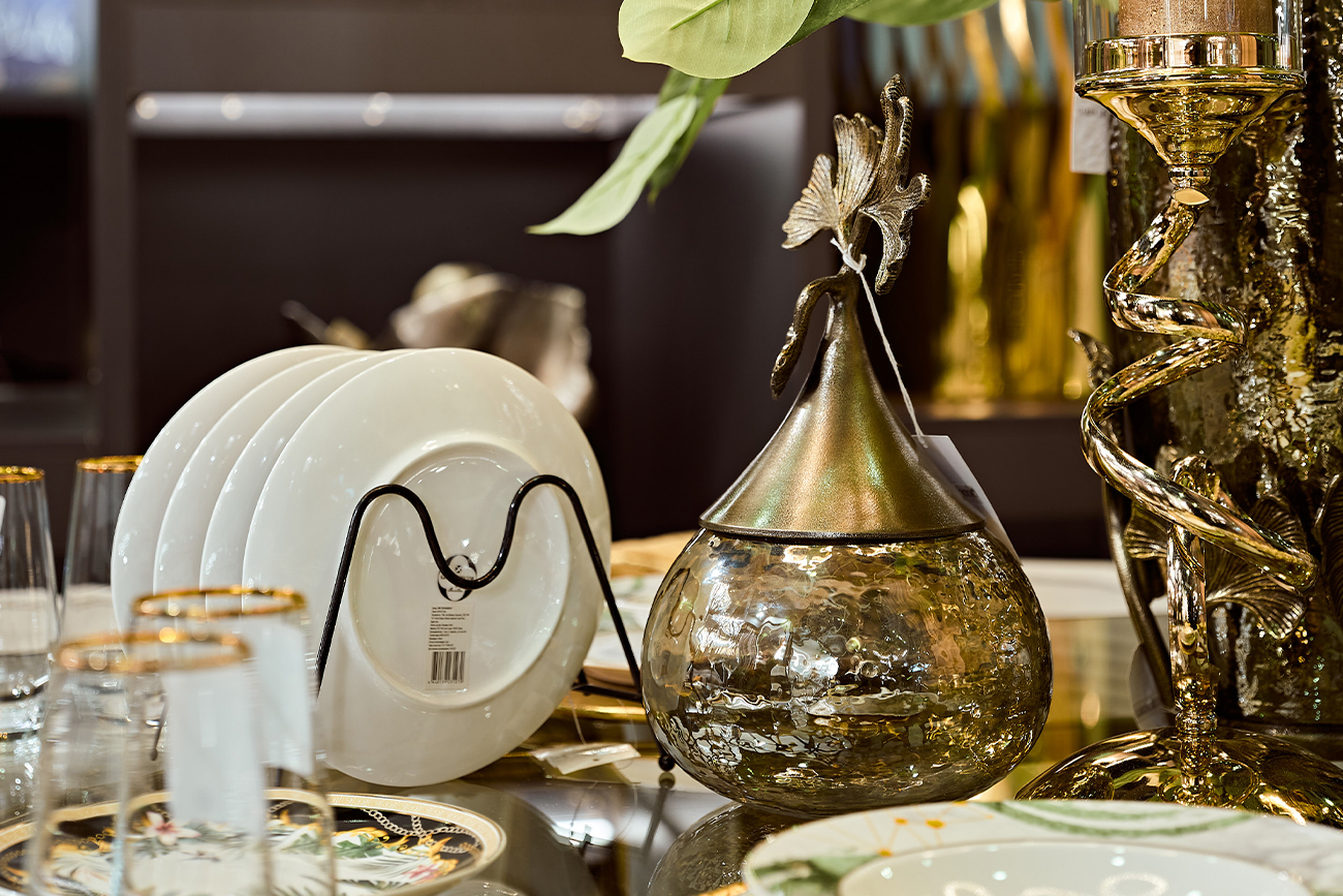 Текстурированное стекло в компании с алюминиевыми листочками гинкго создают потрясающий эффект. Ваза выглядит дорого, но при этом совершенно не утяжеляет интерьер, не выбивается из общей концепции ар-деко. Благодаря крышке она может с легкостью брать на себя функции шкатулки для украшений и мелочей. Красиво смотрится в компании других ваз из этой серии.