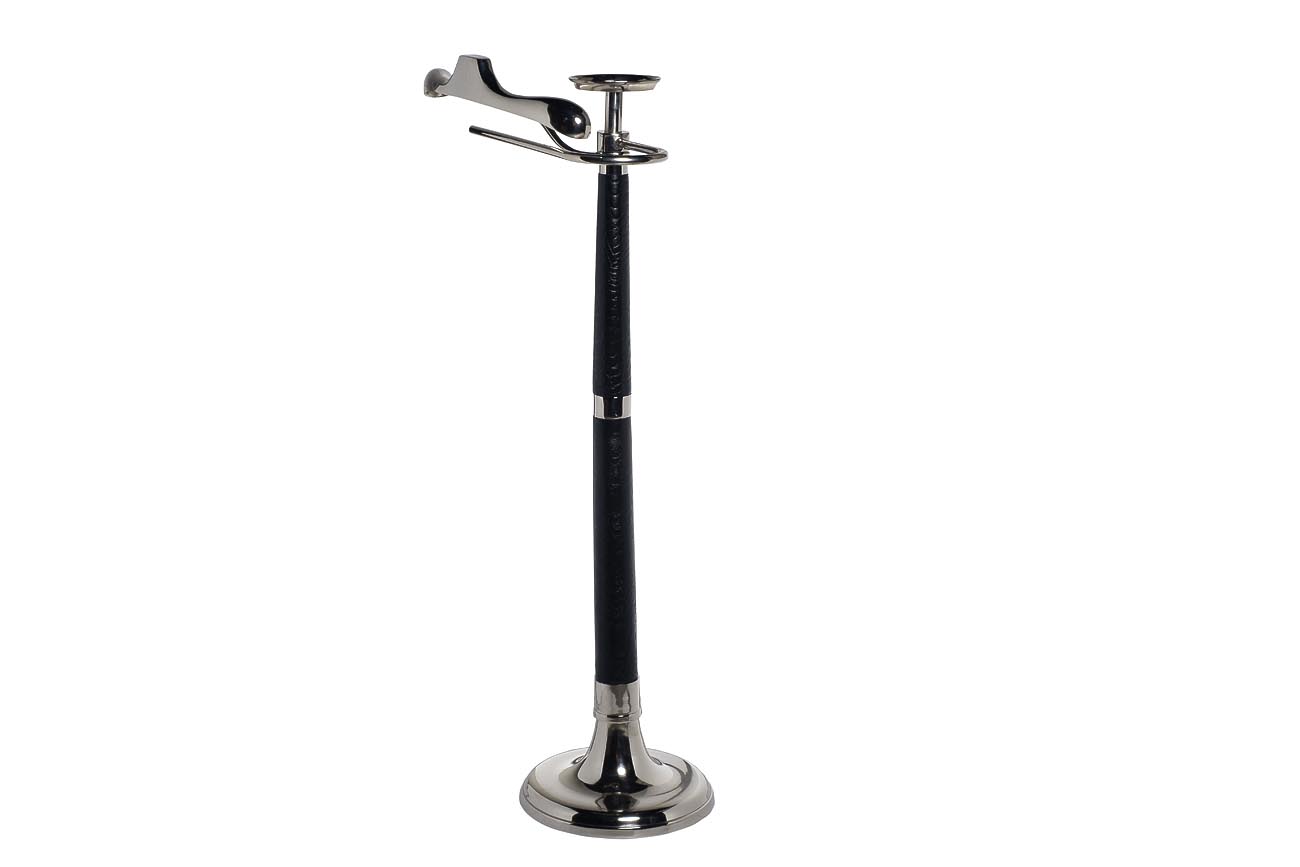 Изящная напольная вешалка с плечиками предназначена для бережного хранения одежды. Она станет стильным дополнением к интерьеру спальни, гардеробной или прихожей. Низкая вешалка напольная не займет много места, при этом позволит аккуратно развесить одежду, не опасаясь образования складок и заломов. Вешалка выполнена из металла с покрытием черной кожей и дополнена декоративными элементами из полированного металла цвета хром. Сочетание черного и хромированного цвета придает вешалке изысканный и респектабельный вид.