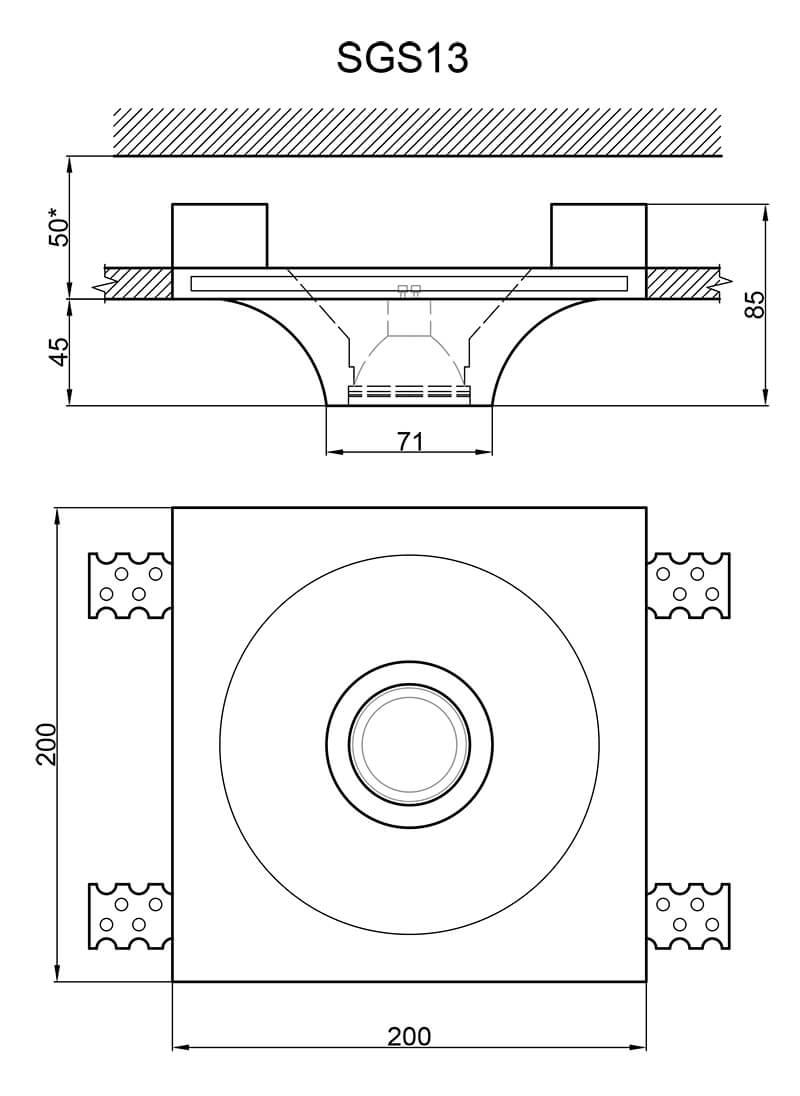 - Диаметр врезного отверстия: 205х205 мм