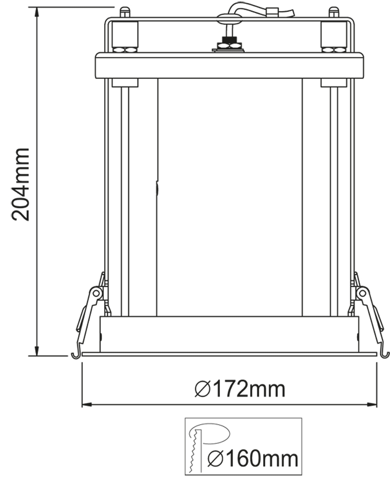 - Диаметр врезного отверстия: 160 мм (16 см)