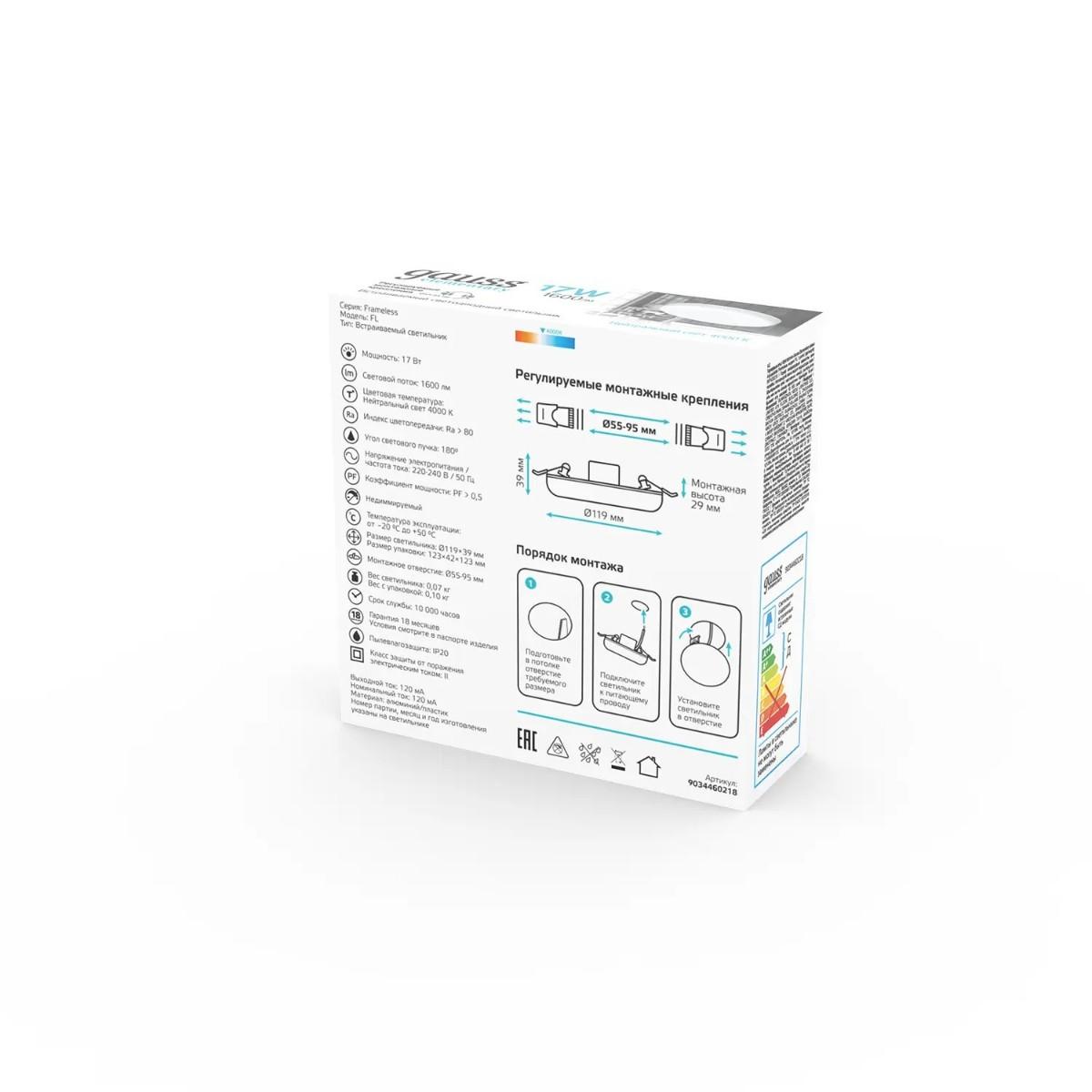 Встраиваемый светодиодный светильник Gauss Elementary Adjustable Frameless 9034460218 в Альметьевске