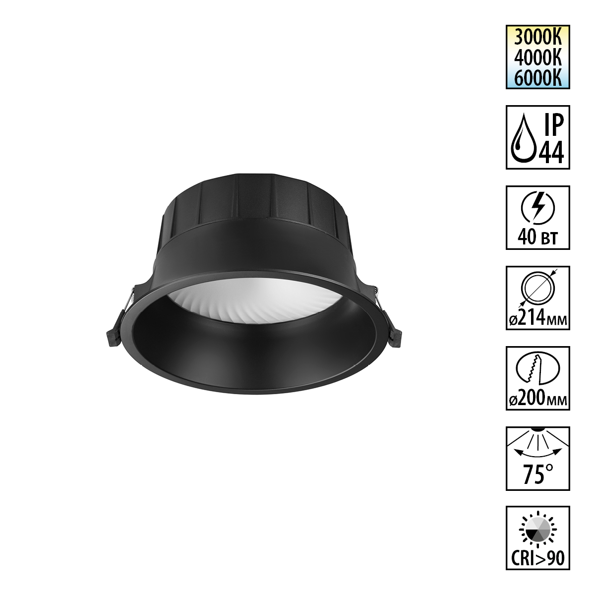 - Диаметр врезного отверстия: 200 мм (20 см)