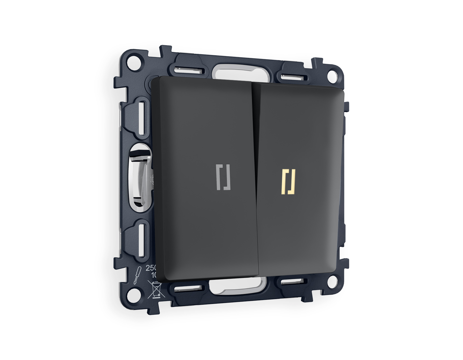 Многогранный ассортимент Ambrella Volt включает в себя механизмы, лицевые панели и рамки, а также комплекты, доступные в различных цветовых решениях. Продукция представлена в модульном исполнении, что позволяет гибко настраивать внешнийвид и функциональность. Вам будет легко заменить лицевую панель, рамку или механизм, найдя идеальное сочетание цветов.