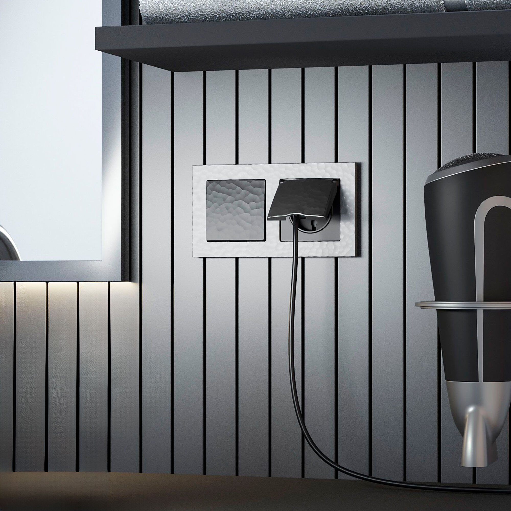 Электроустановочное изделие монтируется в установочную коробку, оставляя видимым только внешнюю лицевую панель и накладную рамку. Механизм для скрытой установки оснащен суппортом из нержавеющей стали, позволяющий крепко зафиксировать изделие в подрозетнике. Надежные контакты из фосфористой бронзы и серебра выдерживают большую нагрузку и обладают большим эксплуатационным ресурсом 40 000 циклов.